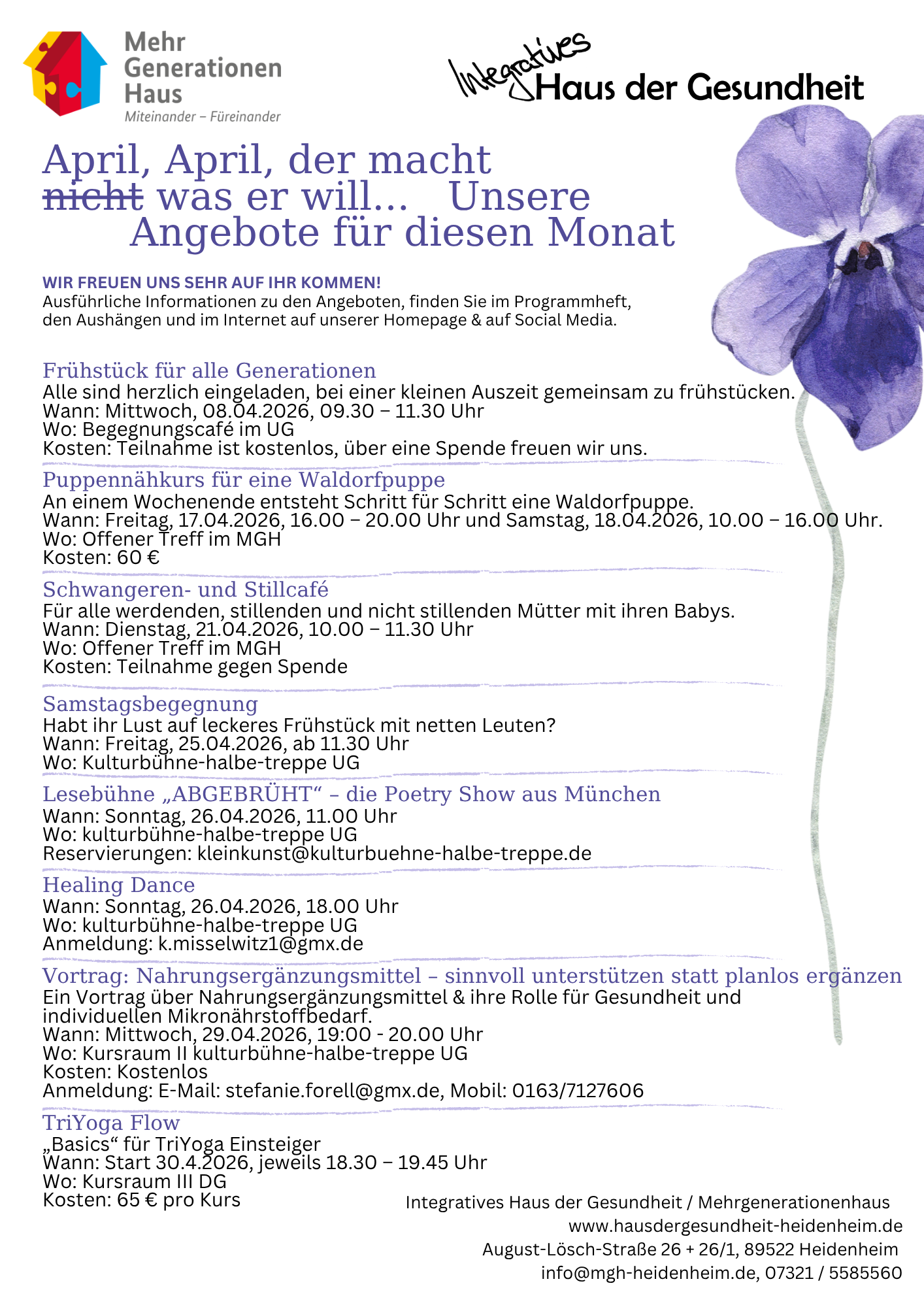 Unter "Angebote - Programm" gibt es jetzt das aktuelle Programmheft